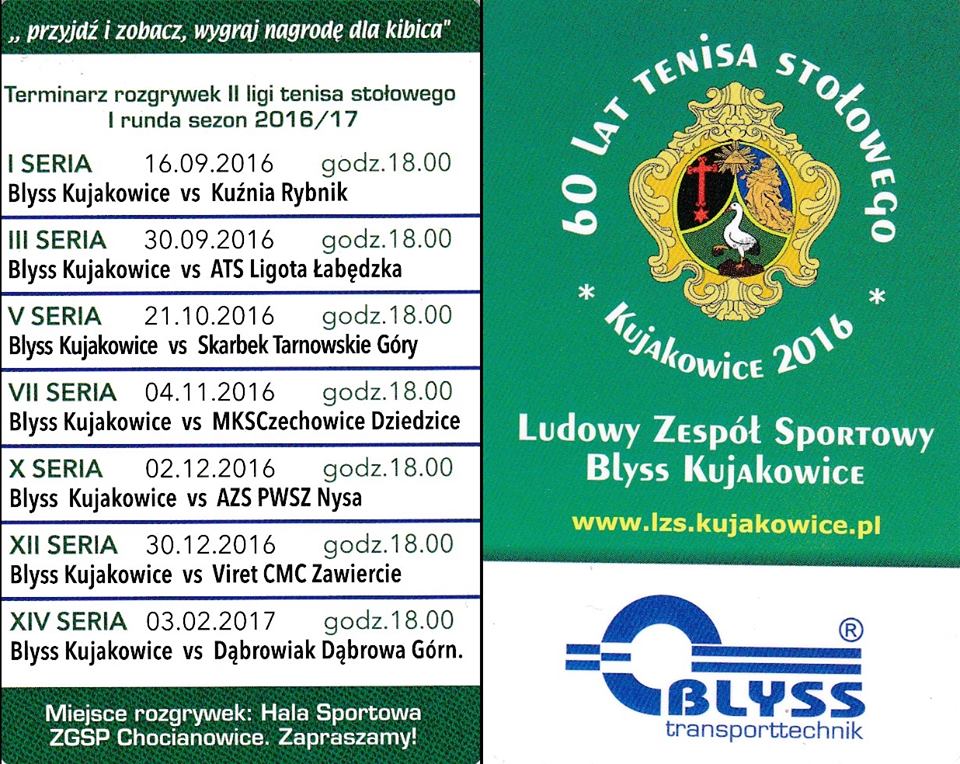 Terminarz rozgrywek II ligi tenisa stołowego 2016/17