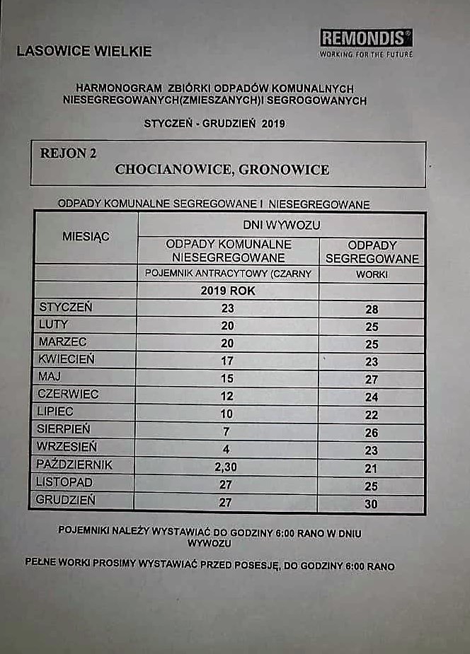 Zaktualizowany został także harmonogram wywozu odpadów, rok 2019 jest dostępny poniżej lub poprzez menu po prawej stronie: