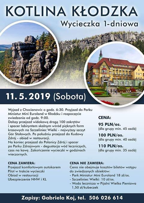 W sobotę 11 maja 2019 planowany jest jednodniowy wyjazd do Kotliny Kłodzkiej – szczegóły na plakacie!